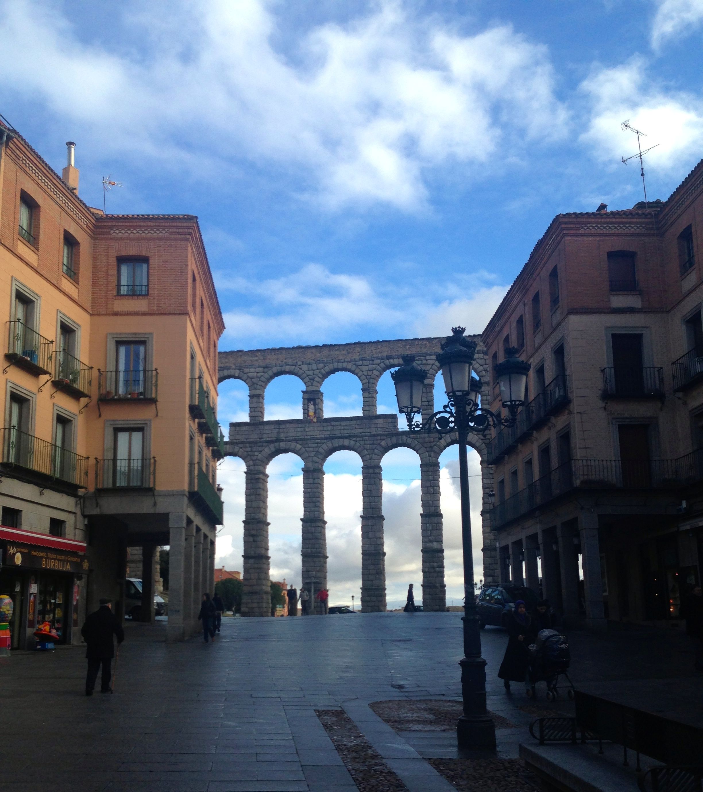 On Saturday, I got myself to Segovia early, at least, Spanish early, which means I arrived by 11am. This involved taking the subway, an hour-long bus ride from Madrid to Segovia and then walking a bit to get to the town’s square, which is dramatically framed on one side by a Roman aqueduct.