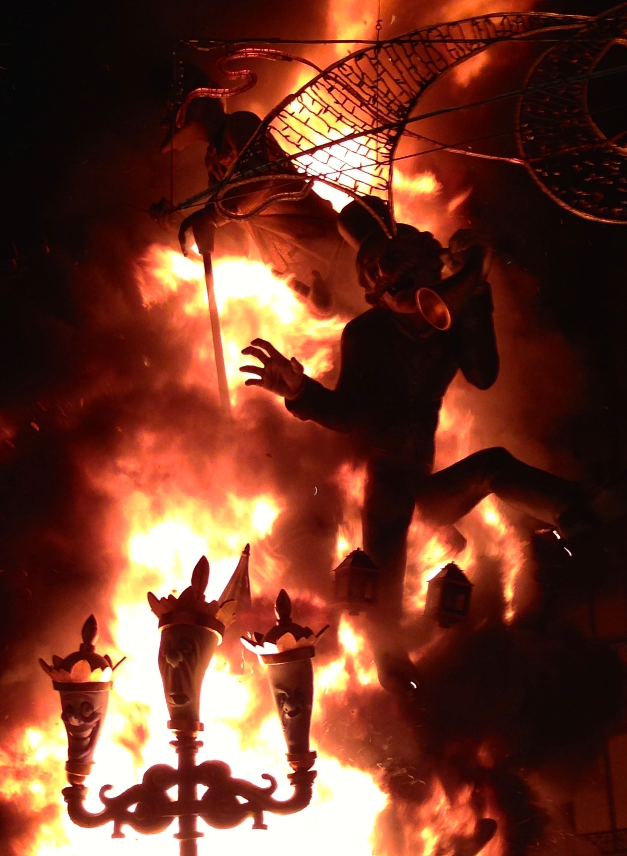 Finally, on March 19, starting at midnight, the fallas are burned. We watched a few, and man, do they burn fast. And HOT. There was a moment when I thought the burning of an anti-French aristocracy falla would be the end of my face skin as I know it.