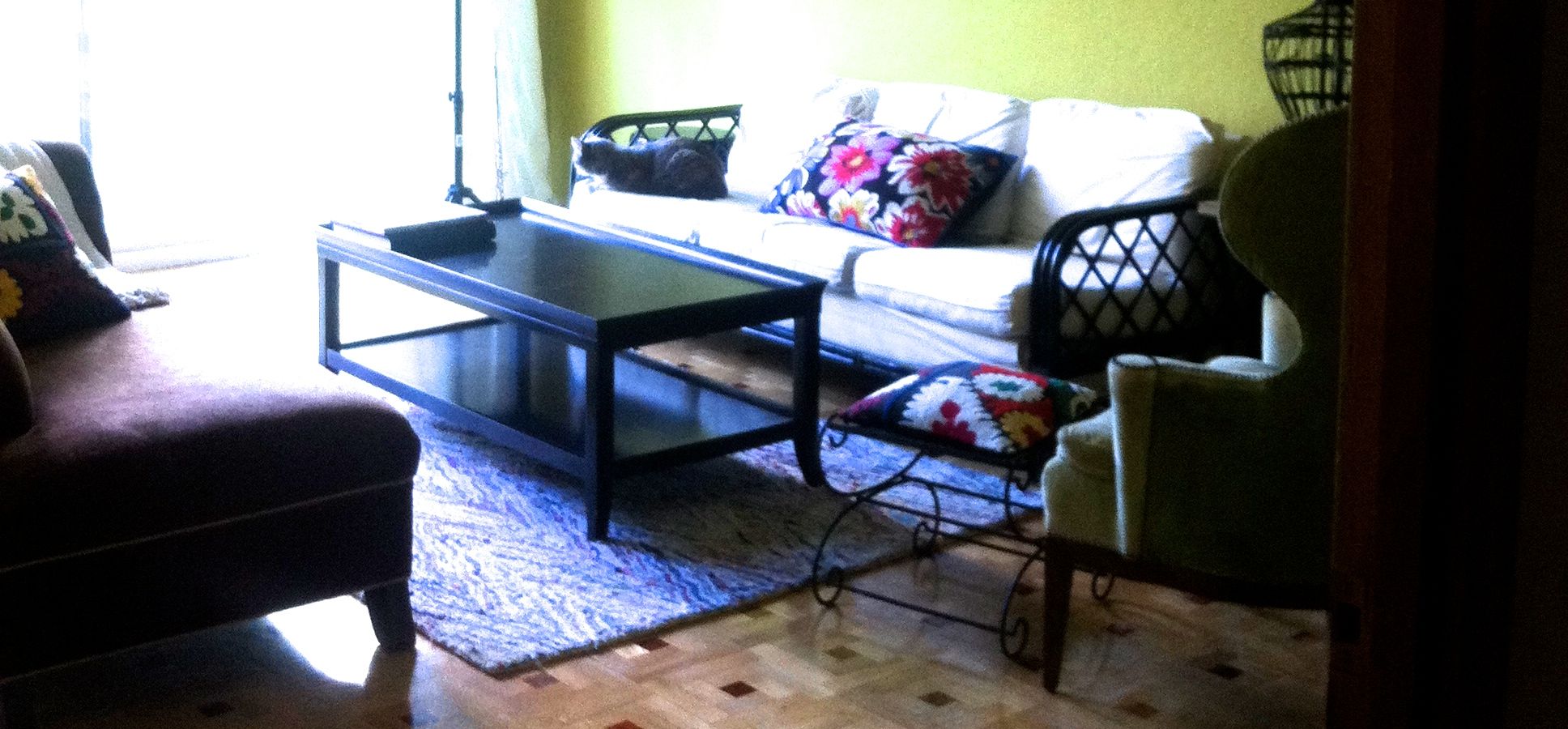 A few coats of paint later and the table looked pretty rad, especially on the bold patterned rug I also bought at Ikea (because I can’t walk out of Ikea spending less than 300 euros, so maybe this coffee table wasn’t such a savings after all…) So, a few hours of work, and less than 100 euros total, I now have a chic coffee table that has much less visual weight than the heavy black one. The best part: Cat hair is practically invisible on it.