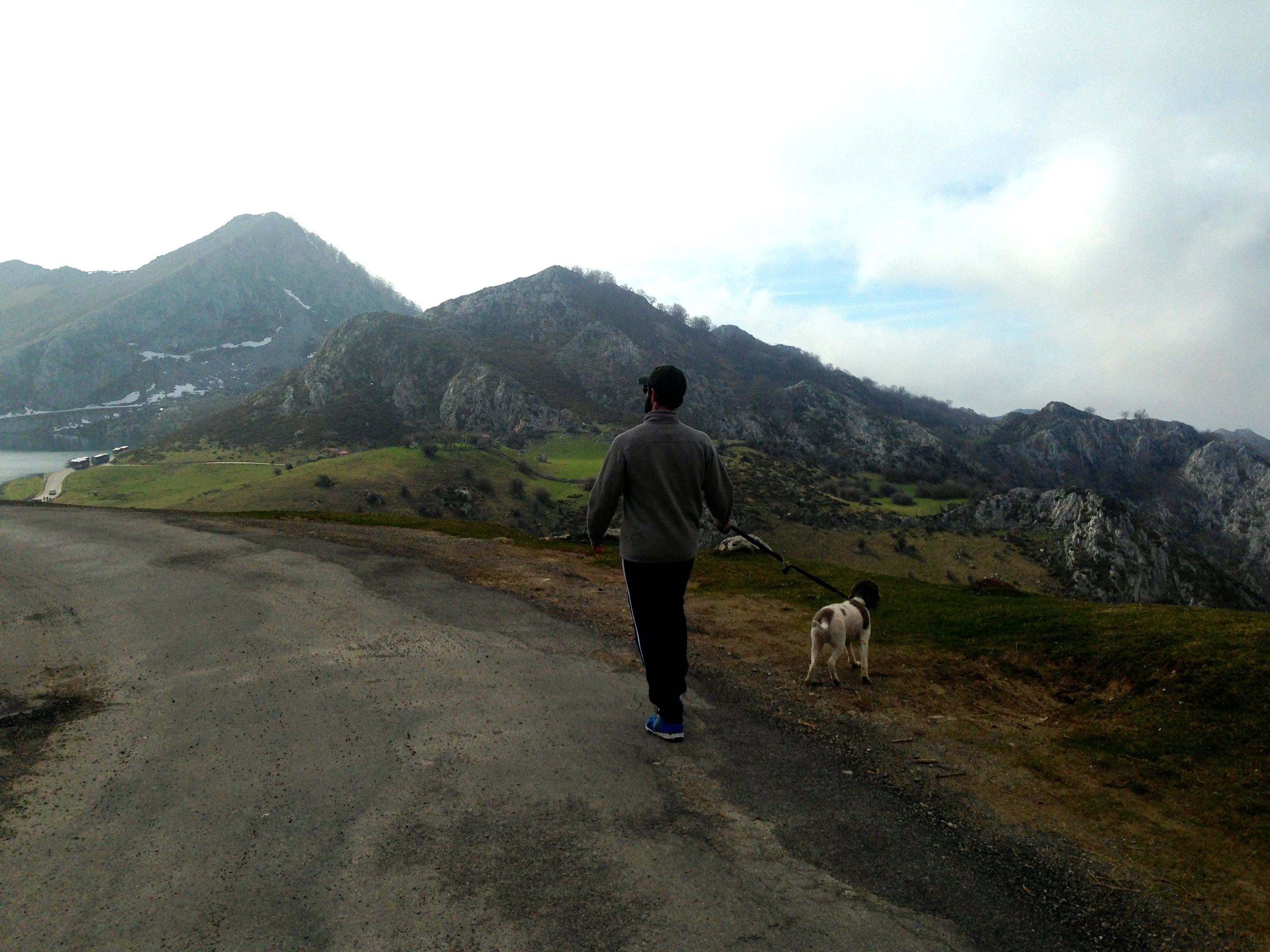 Mr. Dame in Spain, our good friend and her dog, and I traveled up to Asturias for a long weekend recently. We checked in to El Habana, a charming, slightly rural, dog-friendly little hotel, located close to the downtown of Llanes. The next day, we took a bus up to the spectacular Picos de Europa, a mountain range that spans three provinces. We spend the afternoon lounging by one of two pristine lakes atop the mountain range drinking Austurian cider, which smells like a fraternity basement but tastes much better (like a cross between beer and very dry white white). It doesn’t have any bubbles in it, so you make the carbonation by holding the bottle above your head and pouring it into a glass held down below.