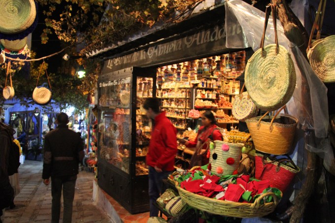 Chefchouen is not particularly known for its shopping (for that, you go to Fez) but we, shockingly, still managed to buy a few pretties in several quiet and quaint shops. There’s a soap and perfume store that is gorgeous, a little shop selling rustic wooden cooking utensils and more, an artisan co-op selling woven-on-site blankets, and a store called Art Marocain, in which I bought a little rug and was taken up to the rooftop of the store by Abdenbi who showed us a great view of the town.