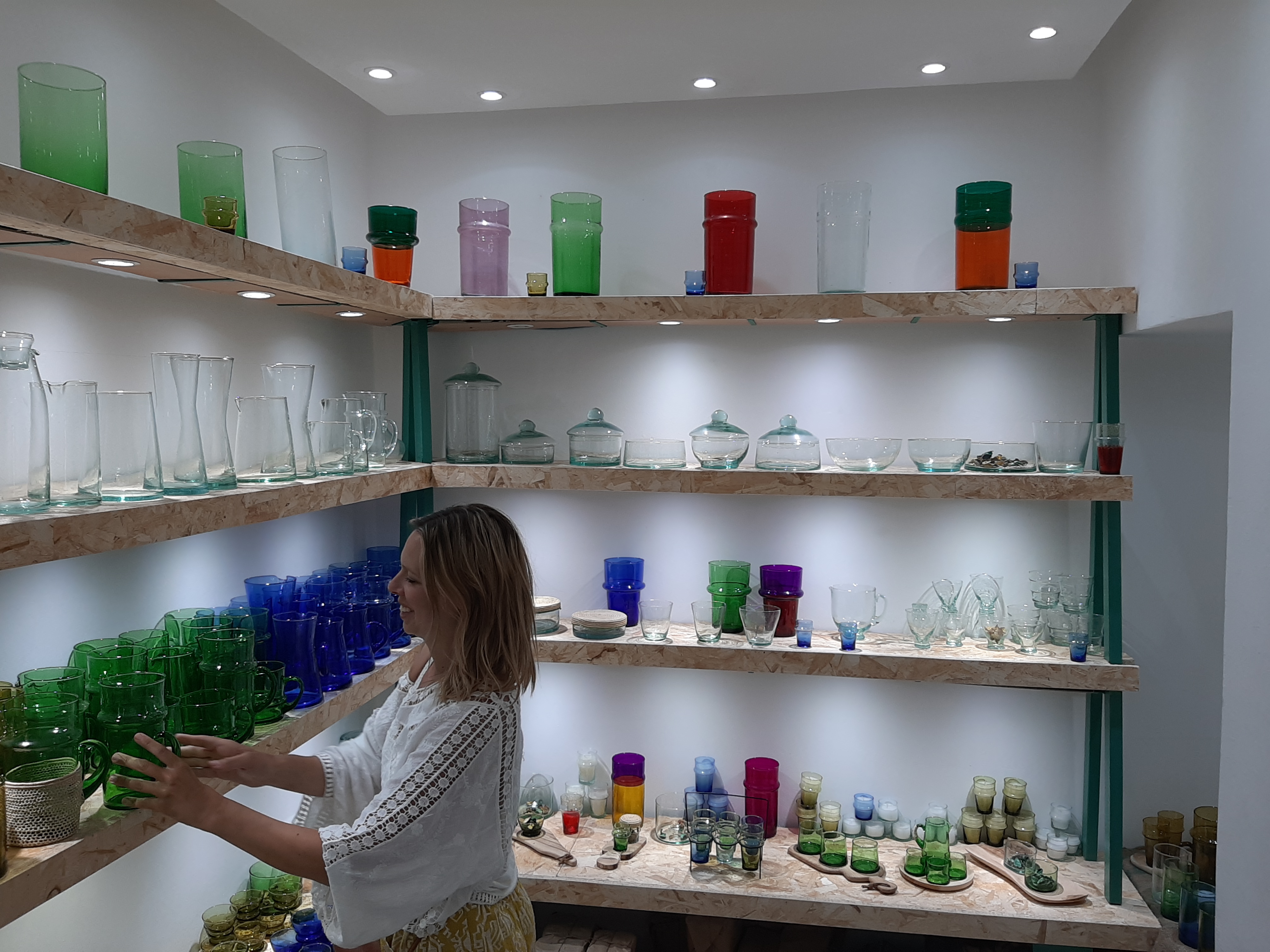 We were days away from the movers coming and packing all our things from our Rabat apartment but I managed to sneak some beautiful hand-blown tea glasses into our shipment, bought at Beldi Chic. I just love the glasses used for serving Moroccan mint tea, clear glasses with a lip near the top for holding daintily on to your little glass. Beldi Chic’s are all hand-blown so each has a little hole where the blower went. I bought 18 and I’ll be using them as wine glasses here in Algiers. I also bought a vase in the same style, just like a little tea glass, but it’s huge, and green, my favorite color. I also bought a chic lotus flower embroidered pillow cover from Basma Boutique, and I wanted to buy everything in a high-end boutique called Minimal but couldn’t afford to do so.