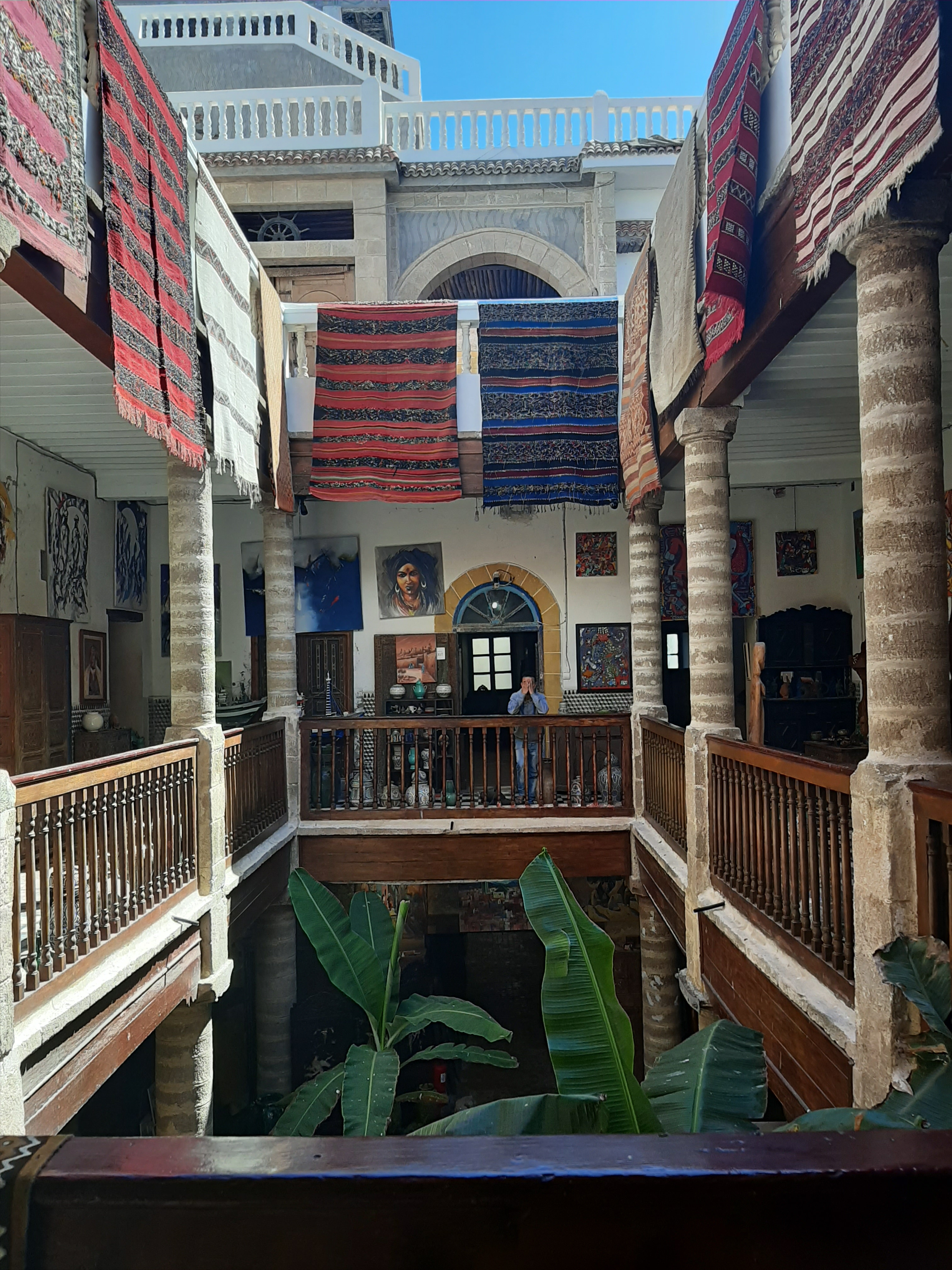 I was surprised to find a few gorgeous and huge antique stores in the medina. Plenty of antiques in Morocco, but more often than not, they’re piled high in an impenetrable storefront, not beautifully organized in a two-story riad like in Gallery le Kasbah in Essaouria. I bought a little painting and my friend bought two really cool modern Arabic calligraphy framed paintings.