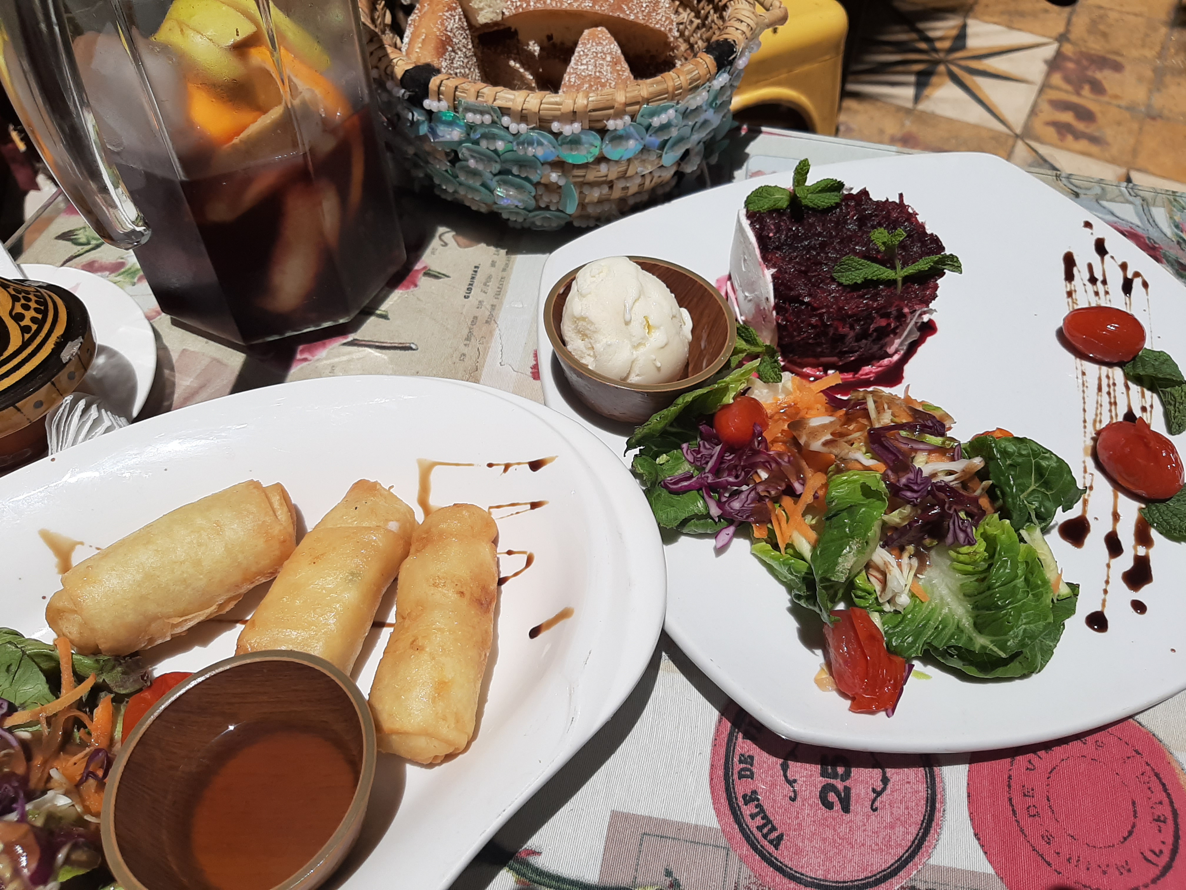 We had a great meal at La Table by Madada, where everyone but me ordered the famous spider crab gratin. I will say this vegetarian was a little jealous because it looked decadently delicious. Still, I was excited to sip a creative cocktail (creative cocktails are hard to come by in Morocco) and eat some okay pasta in the chic former carob factory. Also had a yummy lunch – which included a beet salad drenched in woodsy argan oil and goat cheese ice cream – at Caravane Cafe, whose funky decor and plants reminded me of a cool Tel Aviv lunch spot.