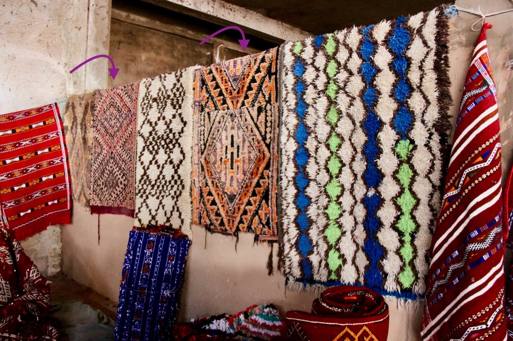 Krista bought two rugs and a blanket and I walked away with two vintage boujaad rugs, both in the purple/orange family (or as I call them “sunset hues”). I think I paid about $150 for each, which is an okay price for a vintage rug. Certainly not a steal, but that was about as low as I could get. Rug vendors like to say “A good price is one that both the buyer and seller feel good about.” I felt fine about the price, but I went in thinking that I’d be able to score much lower prices and I was not able to do that.
