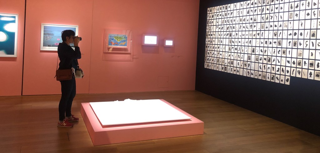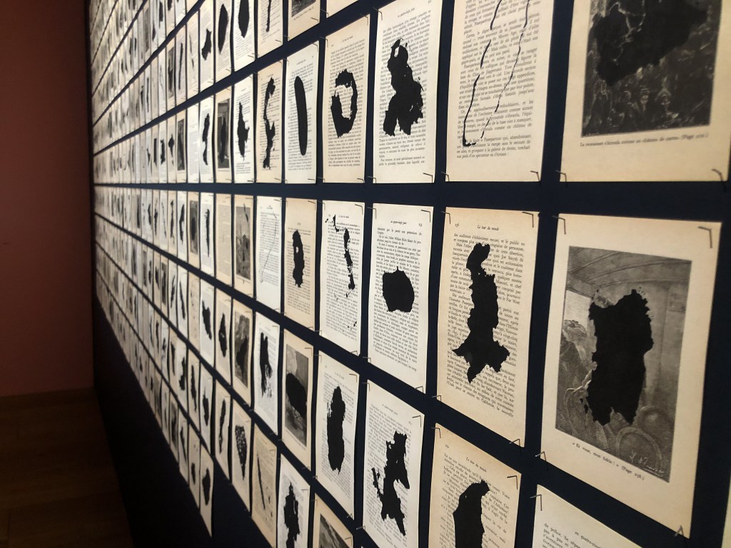 The MuCEM is currently presenting an interesting exhibition on the idea of islands. I was taken with the stunning work of Aurélien Mauplot who stamped islands onto the pages of Around the World in 80 Days by Jules Verne and pinned them to a wall, mostly because I think this is a genius idea for inexpensive/big art.