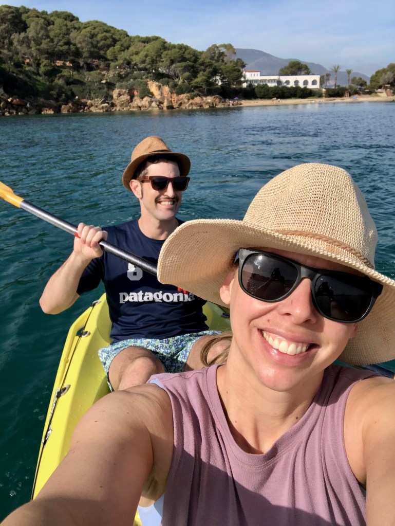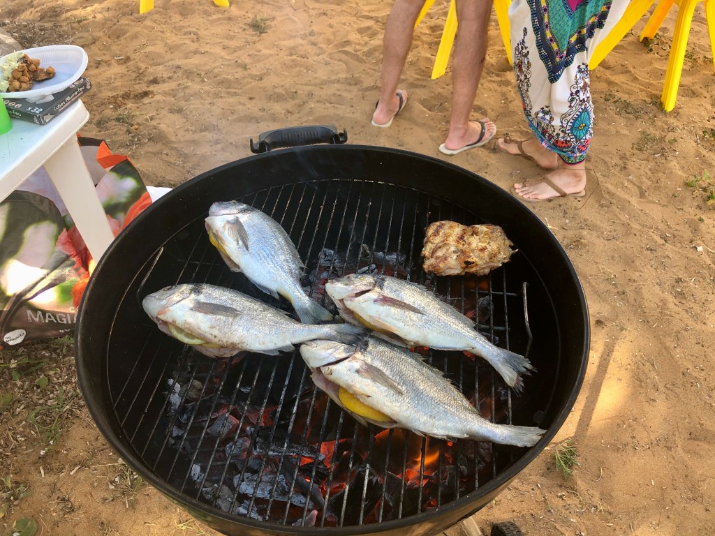 The next morning started what was really probably the nicest and most fun day I’ve had during my time in Algeria. A morning workout overlooking the Med, Adam and I renting a kayak from a little scuba/kayak/SUP shop on the hotel grounds, sitting on the beach (Adam uncharacteristically plunged in the rather freezing water. (I am still not supposed to be swimming or bathing after my surgery five weeks ago). And then a late afternoon BBQ. I had brought a couple of salads that I put out, others brought noshes and meat to grill, and our Norwegian friend went to the pier to buy loads of shrimp, sea bream, and baracuda and handed them to me to cook. I told him that, as a new fish eater, I’ve still only cooked fish maybe 10 times, but alas, I was appointed the fish grill master. As I was stuffing lemon slices and garlic into the body cavities of the fish, rubbing them down with salt and pepper, our Algerian friend told me that I’d changed his mind about Americans and food. “You’re making that like an Algerian!” he said. Previously, he had thought Americans were only interested in Big Macs and bags of chips, but I showed him Americans can cook. Lol, I’ve encountered this view a few times in Algeria, and I blame it on the proliferation of American fast food chains in many parts of the world. Although here in Algiers, the only American fast food is a newly-opened Pizza Hut. I consider it my food diplomacy mission to show the world that American food is so varied it almost defies explanation, and that it’s a wonderful cuisine, and that most of the Americans I know are interested in food. Also: What a sumptuous sensation to be sitting on the beach, peeling shrimp and washing it down with cold white wine, in the middle of February. Let us recall that a few weeks back, I was cross-country skiing in snowy Michigan.