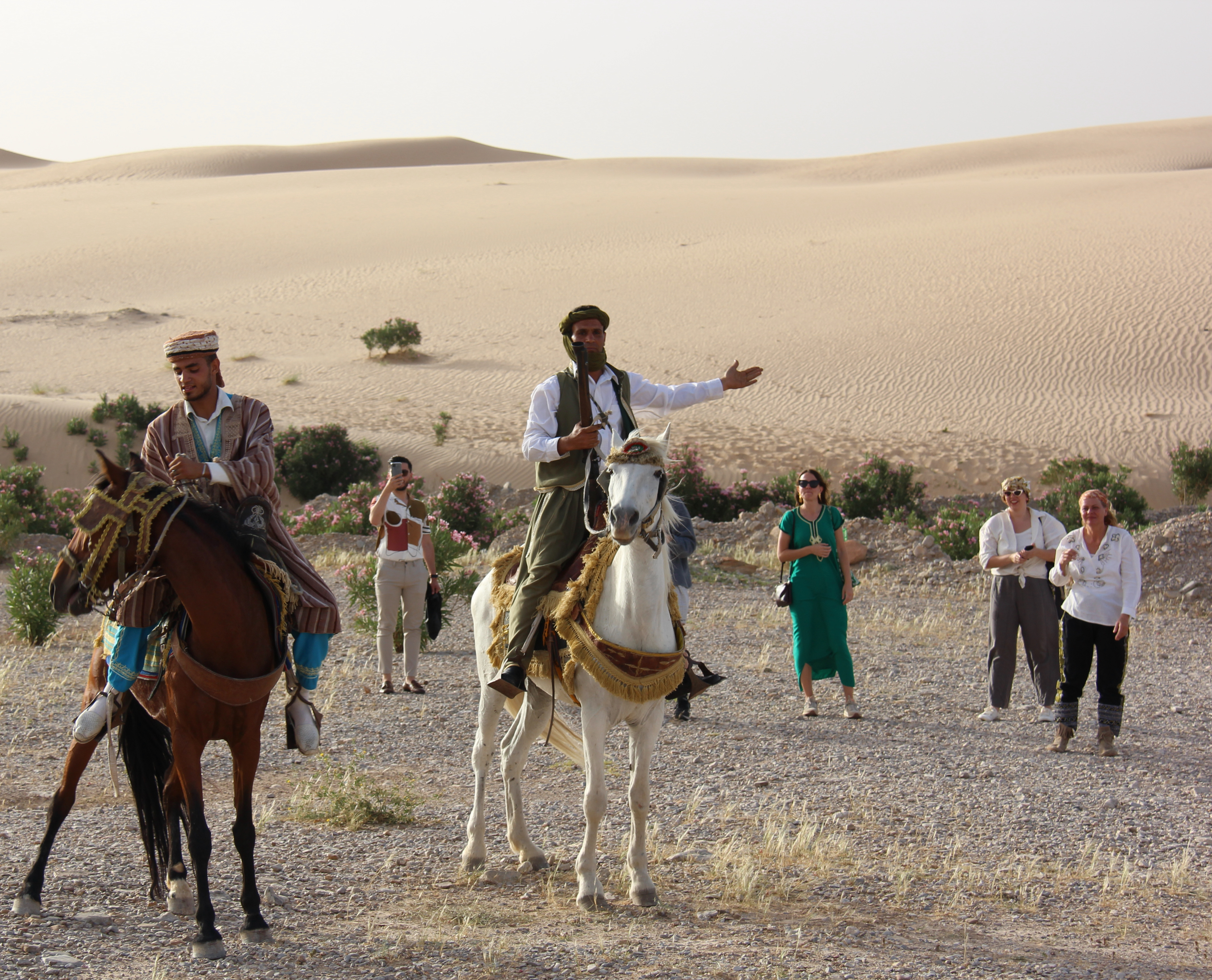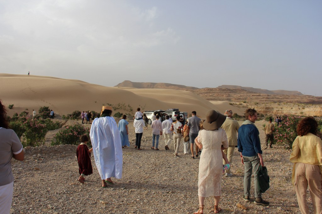 One of the major highlights of the whole weekend was we all went out to the desert dressed in our “desert chic” outfits, traipsed over sand dunes, took tons of photos in that magic light, and sat down for a meal in the Sahara Desert, which is an experience that just never gets old. The gun-shooting horsemen were there, of course.