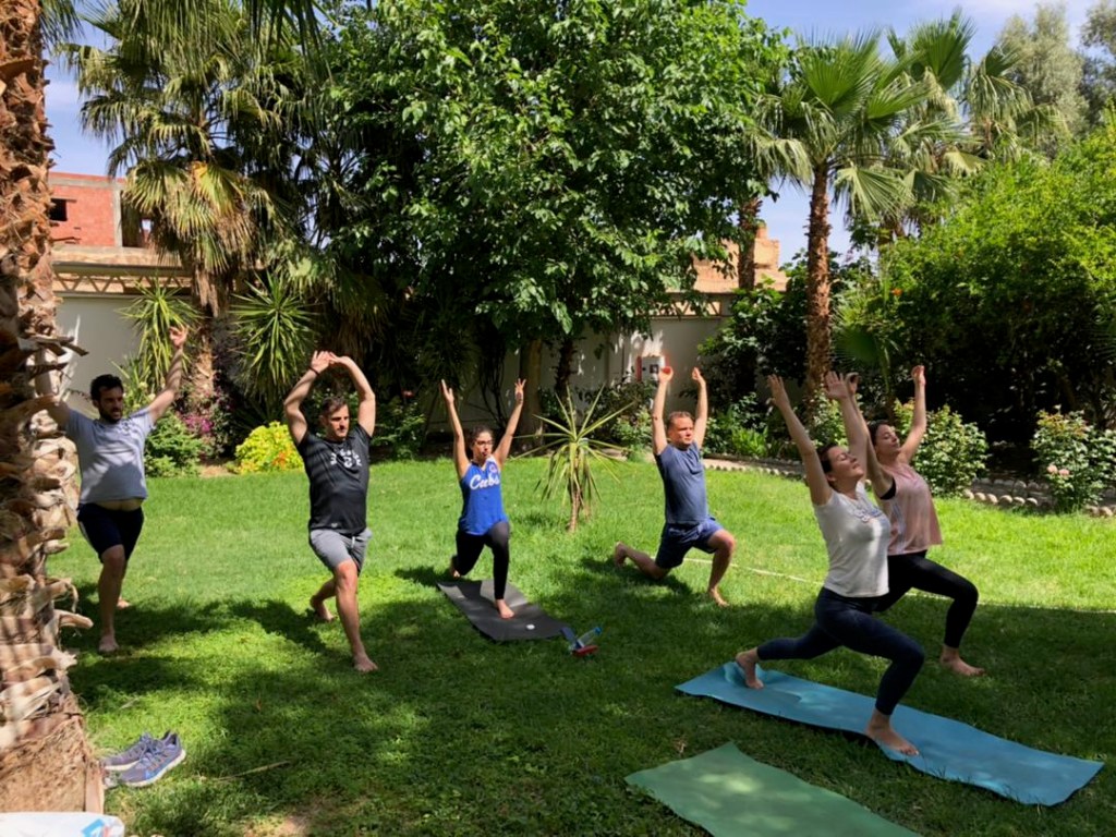 On the second morning, Adam and I arranged for our American yoga teacher from our time in Morocco (who has since joined the Foreign Service, actually) to Zoom in and lead a yoga class. It was lovely to do yoga in the hotel’s outdoor space, and the best part was when Alex of Yoga Raha instructed us to open our mouths and make whatever noise comes out, the peacocks joined in with their musical shriek.