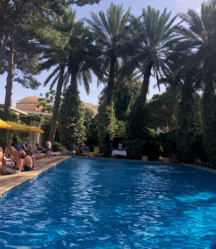 The hotel itself was pretty nice, but the outdoor oasis in the desert was VERY nice, lush with palms and all sorts of gorgeous flowers, a beautiful pool, storks flying over, and even a few resident peacocks.