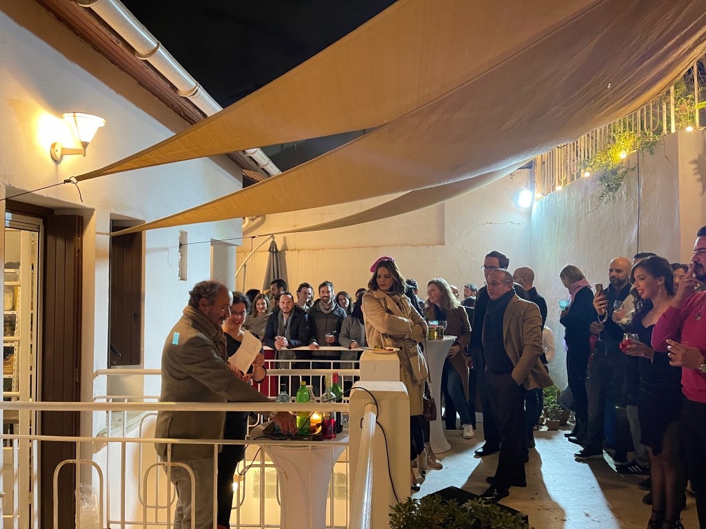 The best part of the party was the incredible Aida Oulmou and her Garage Band, performing live on our patio, bringing down the house with All I Want for Christmas is You, and Last Christmas as well as some Algerian hits. During the band’s intermission, we tried to get some Christmas carols going, led by Adam on the flute. Me as the carol-master is not a great idea as I can’t carry a tune, but still: A group of dozens singing Have Yourself a Merry Little Christmas is good in any key.