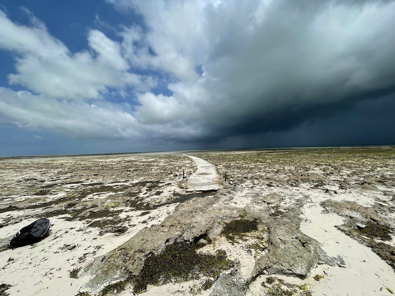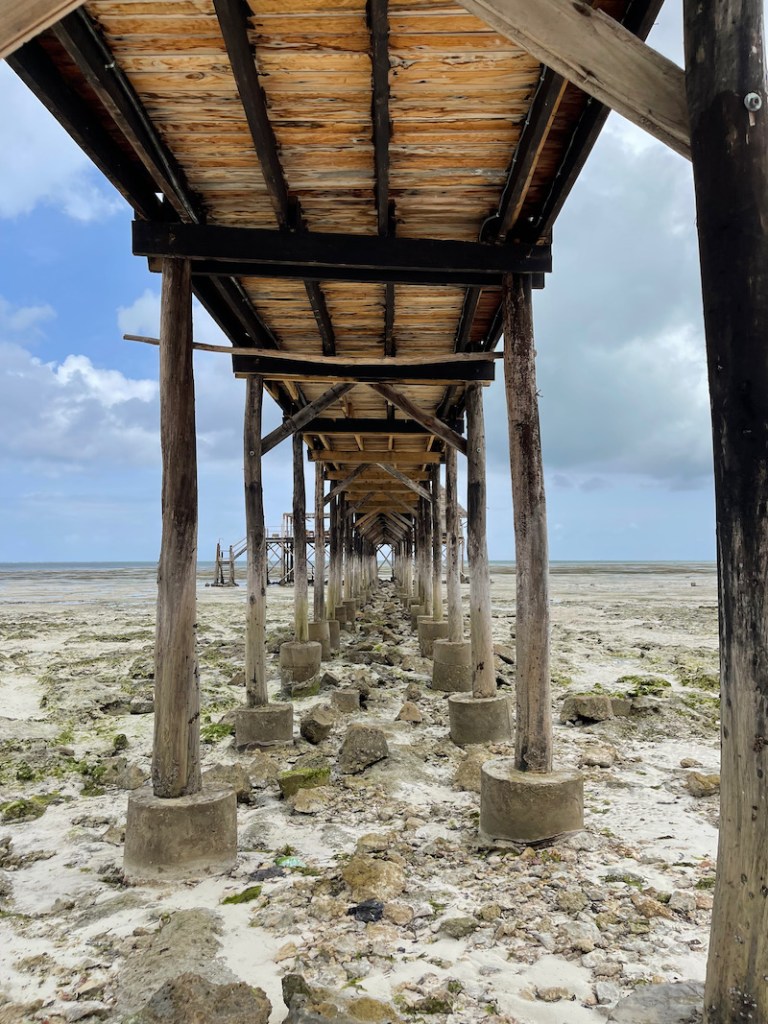 So Zanzibar: I think it’s a complicated place. The fun bustle of Stone Town, but also the guy who sold us on his street fish skewers, but after we’d ordered made us go stand far away by trashcans to make way for new customers and then tried to double the price once the skewers were cooked. Feeding part of our giant seafood feast to a stray cat at the party bar owned by a friend from our Yemen days, and then the cat promptly liquid shitting on our seats. Gorgeous fabrics and patterns and rooftop restaurants and fresh fruits, but also having things stolen from the safe in our hotel room. COVID infections, getting our noses swabbed in the sand, and people who don’t trust vaccines but also healthy food, tropical drinks, excellent yoga. The crazy tides that when they recede, leave the beach looking like a bomb scene scattered with wooden boats, but when they come, fill in that blank space with cool, clear water. The vibrant coral reefs, the luxury of the resorts, but that nearly everything we saw seemed to be just for the tourists and not enjoyed by the locals.