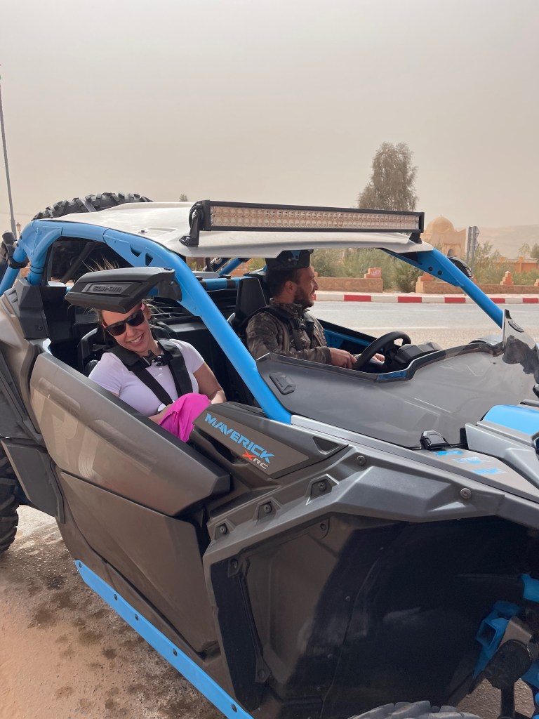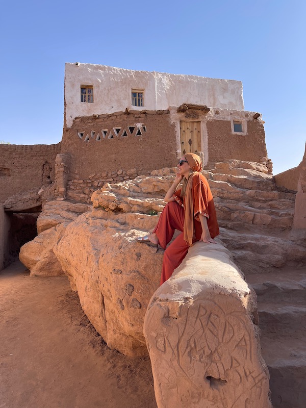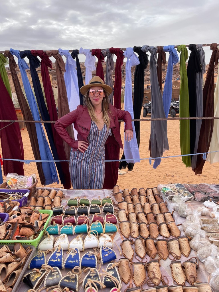 The following day, us girls put on our desert finest and walked down a desert road to get to the downtown of Taghit. Jenny, my friend from high school, was dressed in hot pink pants which maybe were a nod to our high school days when she’d rock Barbie pink pleather pants with a matching halter top (it was the early 2000s). Jenny’s always been extremely adventurous and I still laugh that her mom once surmised that I was a bad influence on her daughter and the reason we’d lied to our parents about staying at each other’s houses but really stayed overnight at a house party. Anywho, two dudes drove up in a hot rodded dune buggy, Jenny said “I want to drive in that” and just like that the driver kicked out his passenger, Jenny hopped in, her hot pink pants a flash in noonday sun, and off they zoomed down a desert highway. The four of us remaining girls stood there for a moment, hoping we’d see our friend again. I thought of how her mom would be like “That Emily, I always knew she was a bad influence!” Lucky for us, we were reunited a little while later in town.