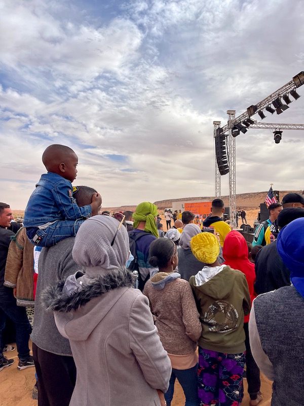 But the desert part: So there is just one airline operating flights throughout Algeria and there were pretty limited flights to the where the concert would be. Algeria is the type of place where you could just ask the national airline to add another flight, but they said no. So Adam decided to charter a full-size commercial flight to the desert. Luckily, we found a travel agent go-between, because fronting more than 30 grand would have been scary. But point is: Adam chartered a plane! We both really wanted friends and colleagues and people we knew in Algeria to experience OneBeat Sahara. And while the Algerian government was a great partner in planning the whole thing, Algeria is not a place that advertises itself very well. (We once saw our favorite Algerian band, Imarhan, perform in the massive Algiers Opera House to just a few rows of crowd). (Contrast that with neighboring Morocco, which hosts an annual gnaoua music festival that draws performers and guests from all over Africa.) All of us embassy folks working on this concert would alternate between that “what if no one comes to my party” anxiety and “omg what if EVERYONE IN ALGERIA comes to my party?” We just didn’t know how many people would show up.