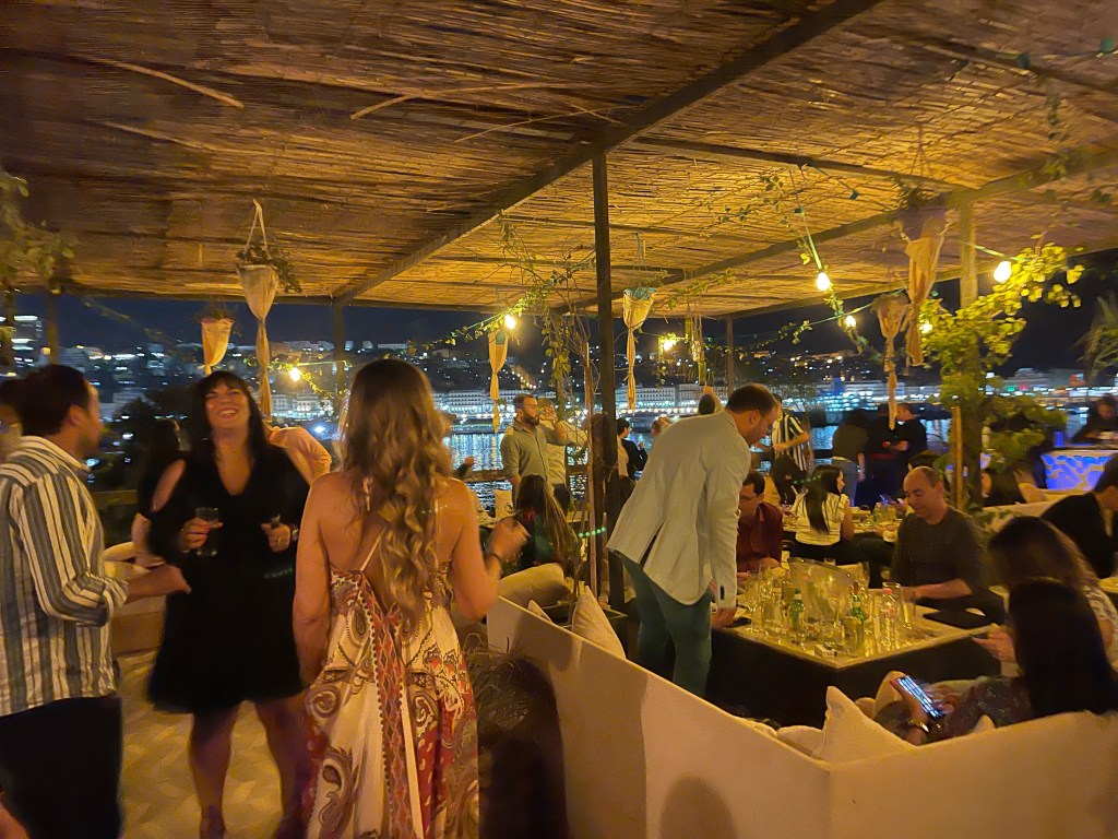 • Al Bustan is one of the half-dozen fancy and reliably good restaurants located on a hill (all of which serve alcohol) just below the Martyr’s Monument. Inside is fancy and buzzy and outside is a spectacular view of the bay. They’re known for their salt-crusted whole fish, which is set on fire at your table.